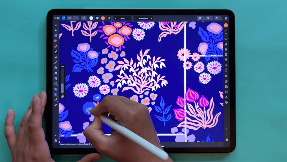 Enrol now and start designing your own half-drop repeat patterns with Affinity Designer using automated templates.